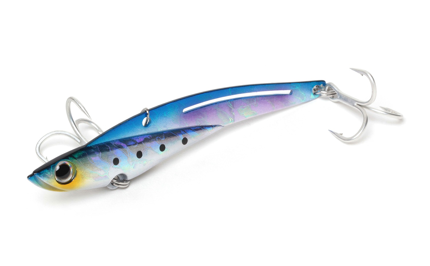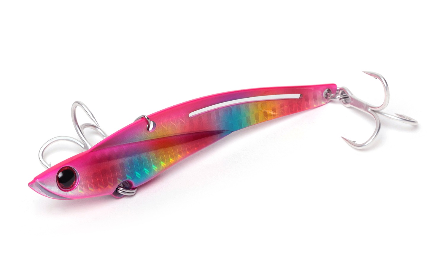 大人気の鉄PANシリーズに大物仕様のストロングモデルが登場。フック・ボディプレートの強化を行い、掛けたら逃さないをテーマに開発しました。特にショアジギアングラーからの熱い要望があり、スプリットリングやクロスロックスナップを取り付けられる大口径アイを採用。泳ぎが水平に近くなるようにウェイトを配置し、ピッチの細かいバイブレーションをしっかり手元に伝えつつ、疲れを軽減させる為に引き抵抗を軽くする調整を行いました。一度掛けたらパワーファイトで逃さない。記憶に残る魚を鉄PANストロングと共に。