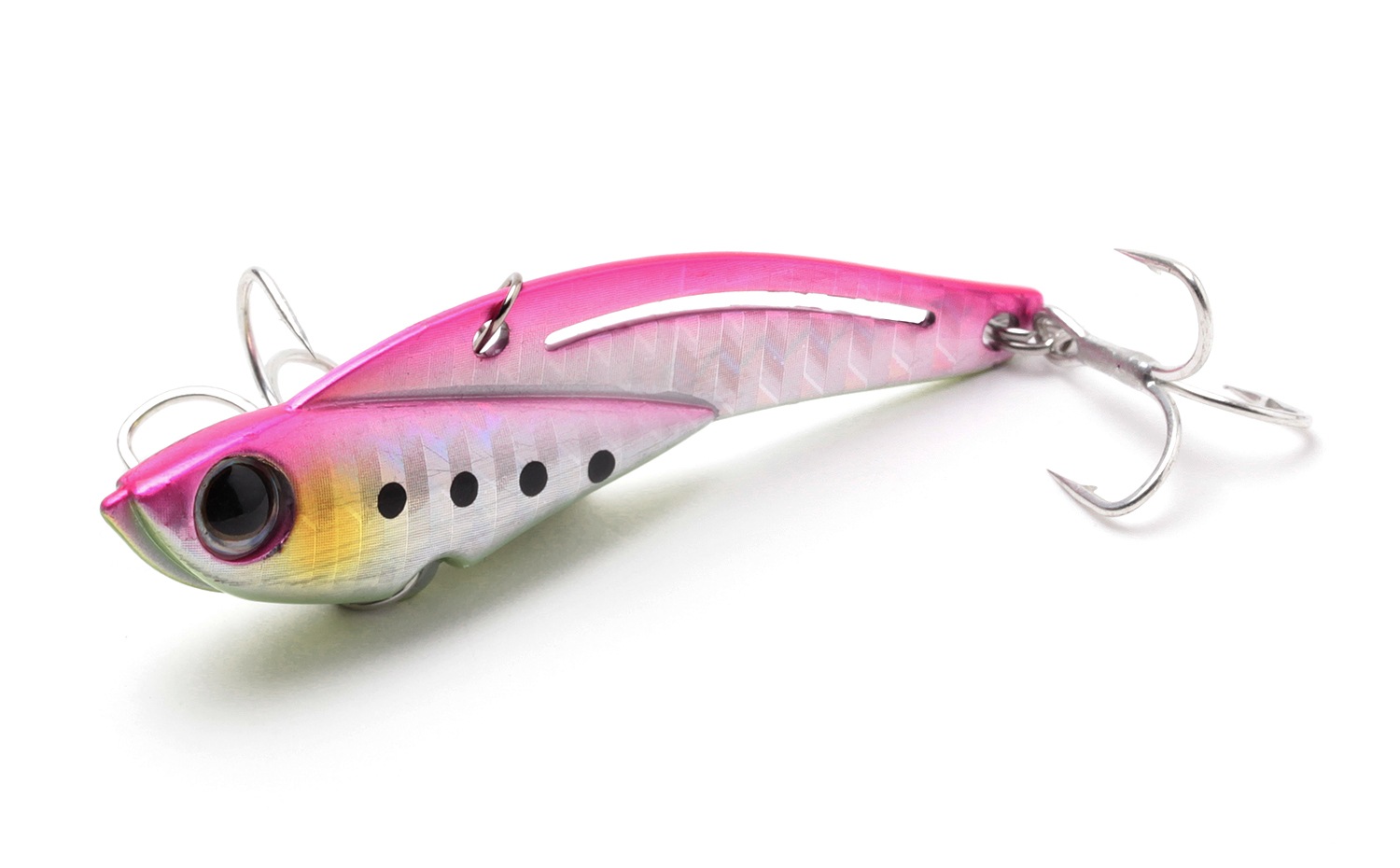 遠投性、レスポンス、強波動など、メタルバイブに求められる要素を高次元で融合。バランサースリットを搭載することによってスイム姿勢を自然なものにするとともに、ライン絡みなどのトラブルが発生しやすいフォール時の姿勢も安定させ、大きめのフックを使用しながらもトラブルを抑えてストレスフリーの使用感を実現しました。
