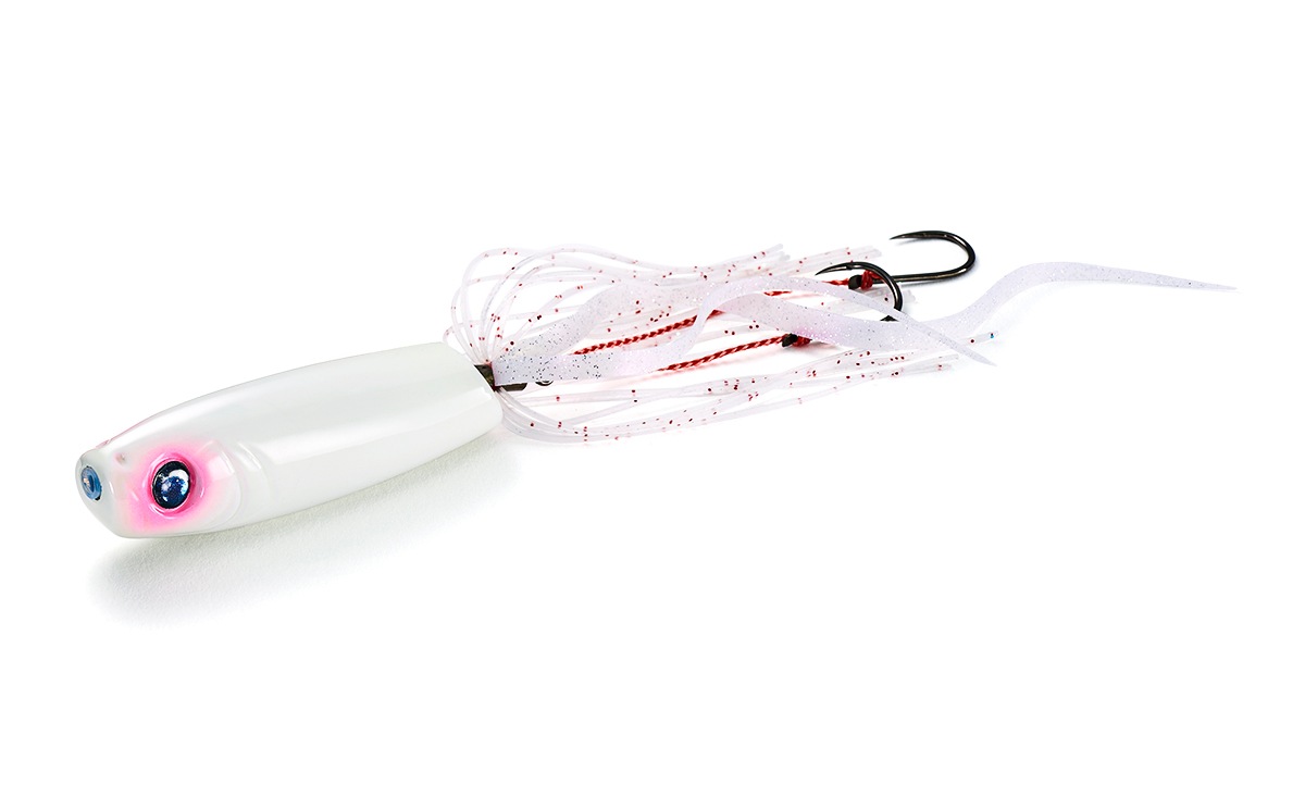 見た目はマカロニのようで親しみやすい形状をしているのに、中身はオフショアでの釣れる要素を詰め込んだ本格的オリジナルタイラバ「マッケローニ」。ヘッドの後方に窪みを設け、フックパーツを収納することでフォール時の糸がらみを防ぎ、ヘッドとの一体化ができるようにしています。また、横長形状の見た目は魚に対して逃げ惑う小魚を演出しています。この独特なヘッドはオフセットフックをセットしたワームやブレードパーツを付け替えて使用することも可能としており、真鯛のみならず根魚、青物と幅広いフィッシュイーターを狙うことができます。遊漁船がひしめく有名ポイントでスレた魚がなかなか食ってこない状況において「最終兵器」として使えるように開発されたオリジナルタイラバ、それが「マッケローニ」です。