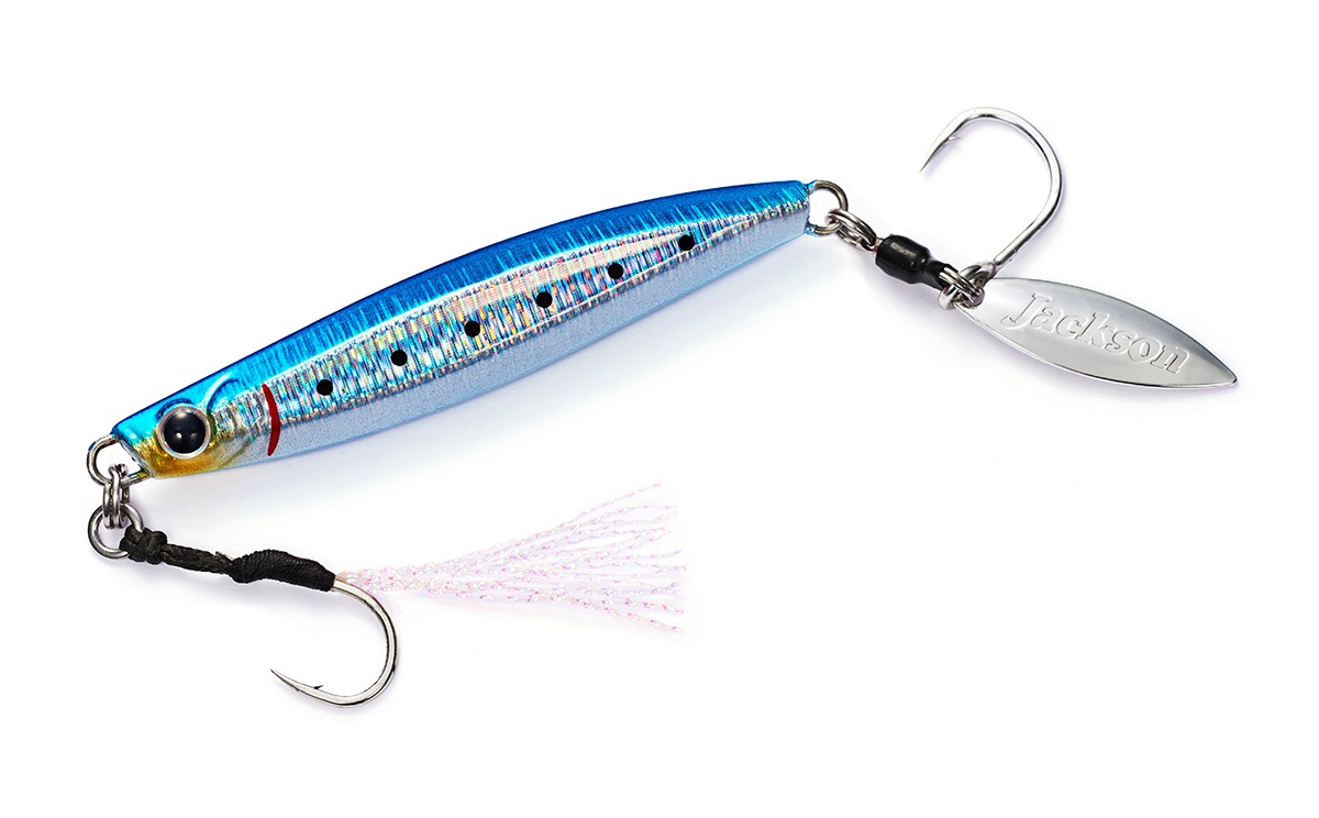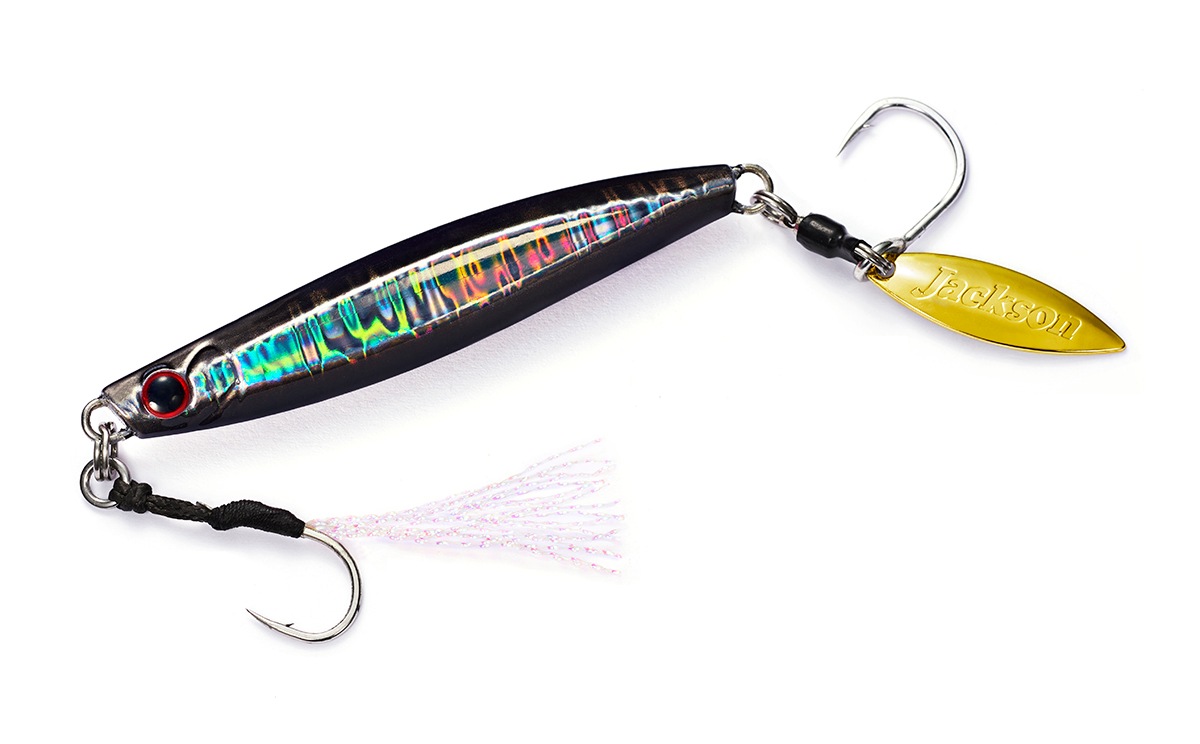 メタルエフェクトStayfallでは縦の釣りを意識した喰わせの間を演出。このメタルエフェクトBladeは巻きの釣りを意識した横の釣りに焦点を合わせ開発しました。Stayfallでは窪みを設けた面と、左右非対称エッジによるフォール専用でしたが、このBladeモデルでは、窪みとエッジを対照にする事でボディーの細かな揺れでフラッシングの強弱を発生させるように設計しています。ブレードによる煌めきアピール+強さの違うフラッシングは、高速で回遊する青物に対しダブルのフラッシング効果で集魚力をとことんまで高めました。青物の回遊スピードはとても早く、ヒットした瞬間にフックへ掛かる重量は大きい為、トリプルフックよりも強度の強いシングルフックを採用。ワンチャンスを物にする、掛けた獲物は逃さないメタルジグの完成です。