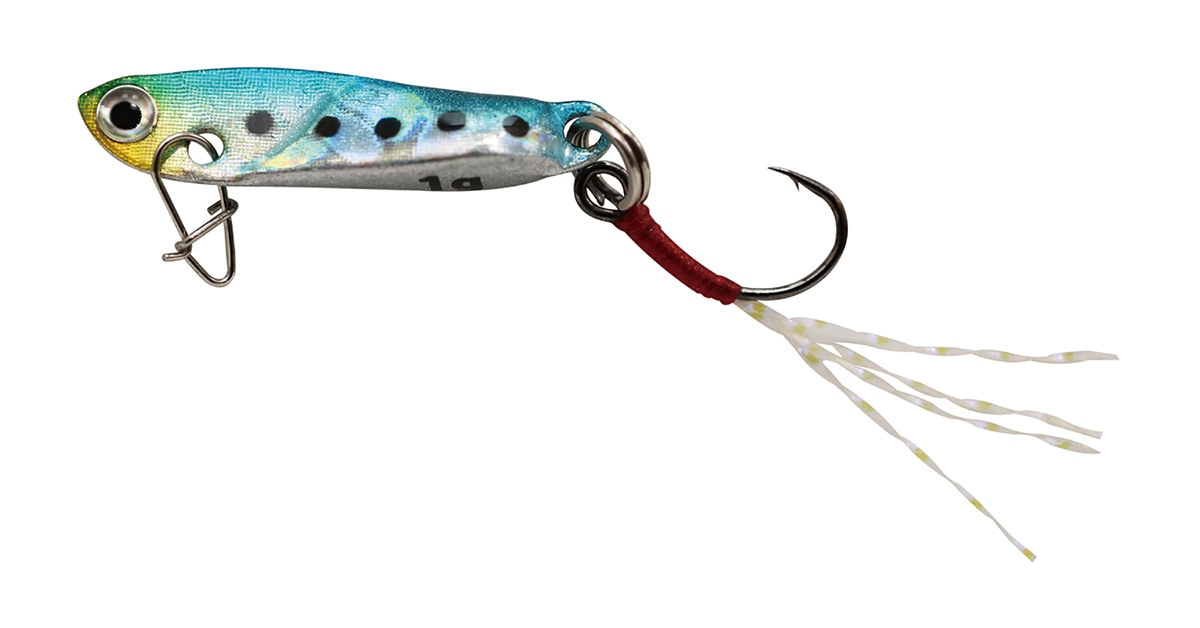 「メタルジグよりも飛ぶ!」と話題のルアー『飛び過ぎダニエル』に、1gが登場!!21mmの極小ボディなのでアジングに対応・・・というよりアジングルアーの中でも極小の部類に入ります。『飛び過ぎダニエル』シリーズなので、この小ささでありながら飛距離は「飛び過ぎ」。ジグヘッドやスプーンの範囲はもちろん、同ウェイトの極小メタルジグでも届かなかった範囲までカバーすることができます。「1gでは軽すぎて全く飛ばない」という概念を崩してくれます。アクションはプラグ的なウォブリングアクション。小さいながらしっかりと存在をアピール。フックにはケイムラ発光するティンセルが付き、バイトマーカーになるのと同時に、アジの吸い込むバイトに対しフック自体を口の中に導きやすくしております。