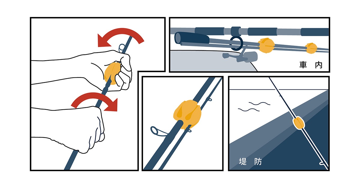 ロッドの継ぎ目が固着してしまい抜けなくなった時のお助けアイテム。エラストマー素材でロッドとの接着性が高く力の伝達にロスがありません。また、柔らかい素材をいかしてロッドベルトとしても使え一般的なロッドベルトとは違いロッド同士が触れ合わないので傷が付く心配がありません。その他、堤防での竿置きや、車載時のノイズ軽減など、様々な用途で使うことができる便利アイテムです。