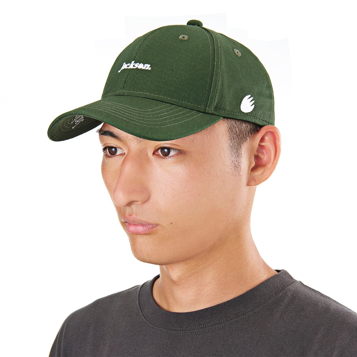 コットンツイル素材を使用している為、使い込むにつれ味が出る、程よい深さのローキャップです。フロントにはJacksonのロゴ、サイドには炎のシンボルマークをあしらいました。通気性を高める刺繍ハトメ、背面はスライダーバックルを採用しています。