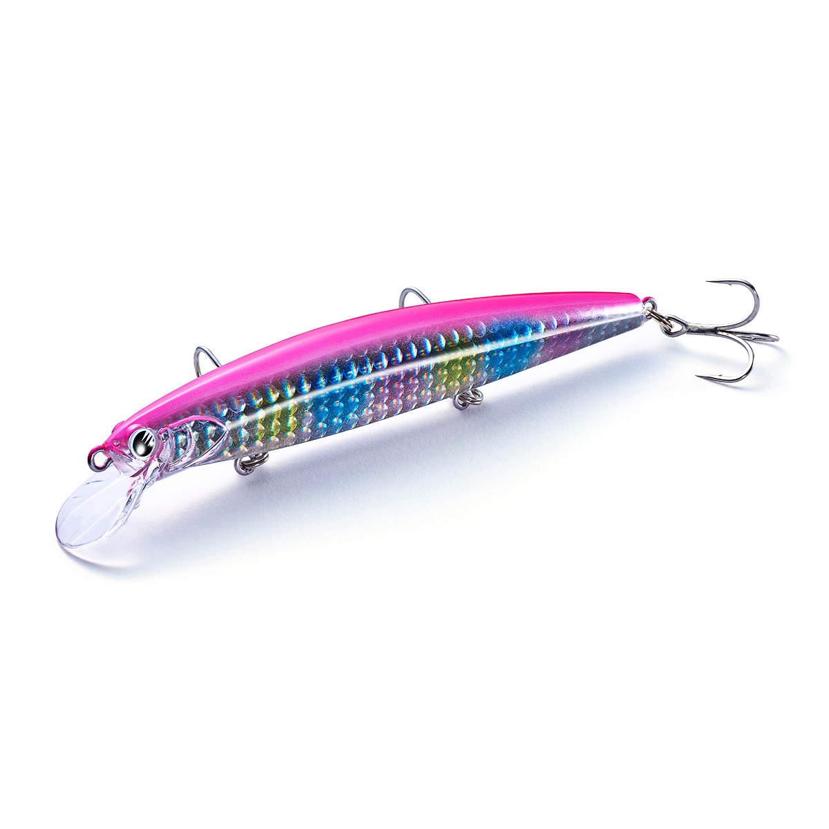 オリジナルの動きはそのままに待望のダウンサイズ、デセプション110が誕生。よりライトなタックルでの使用も可能にした万能ミノーが完成しました。キビナゴ、カタクチイワシといった10cm前後のベイトにマッチ。ボート、オカッパリ問わず、小中型青物やシーバスなどのフィッシュイーターに必殺ルアーとしてお使いください。